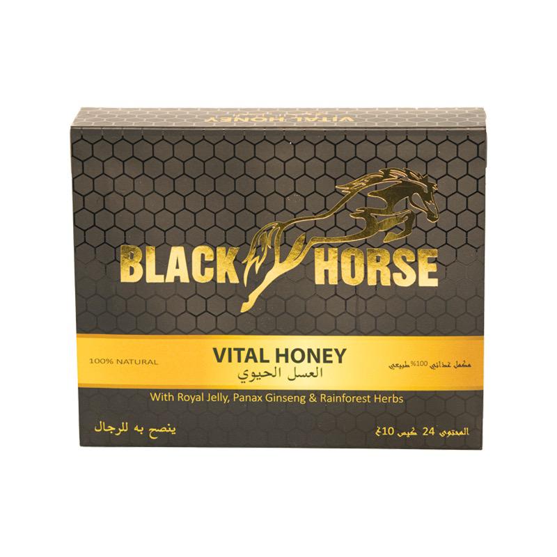 Black Horse Vital Honey with Royal Jelly, Panax, Ginsey & Rainforest, Herbal Mix( Pack of 24 Sachet of 10 Gram)